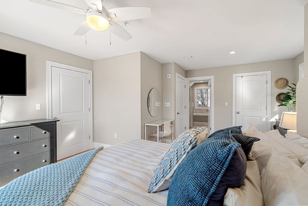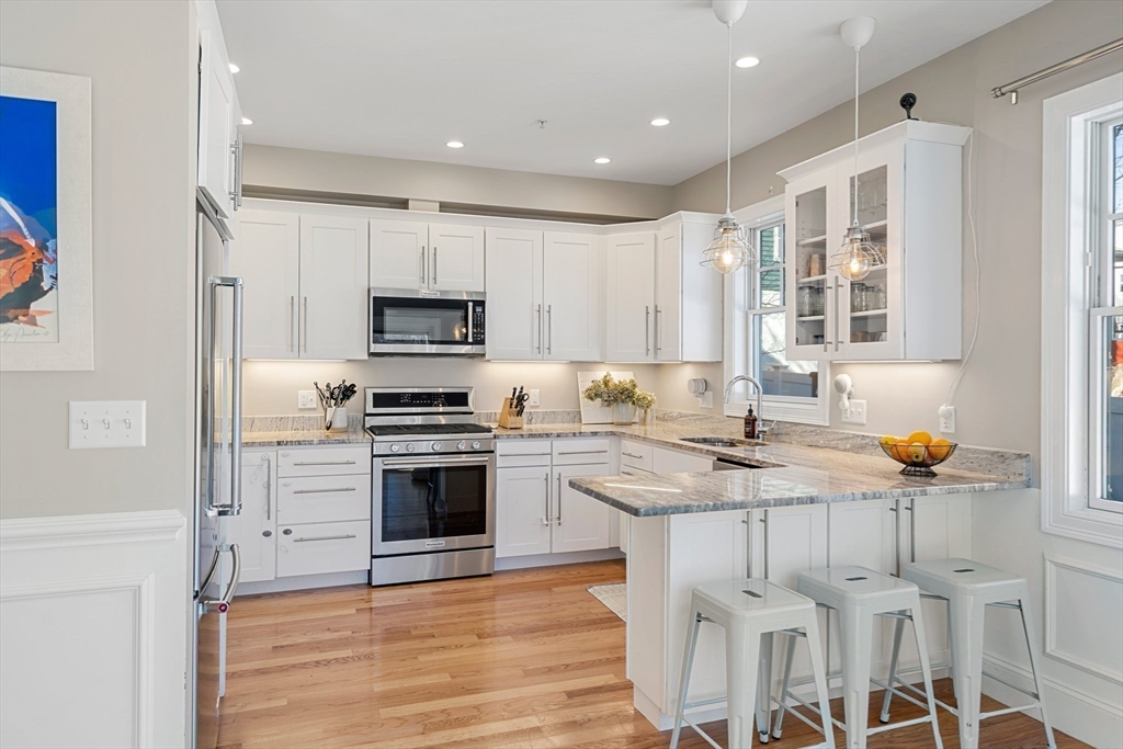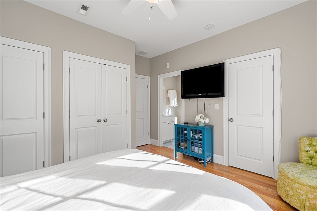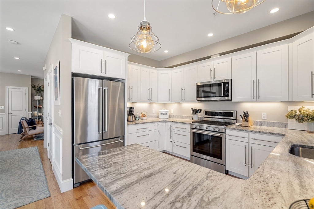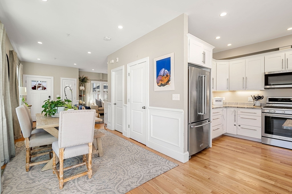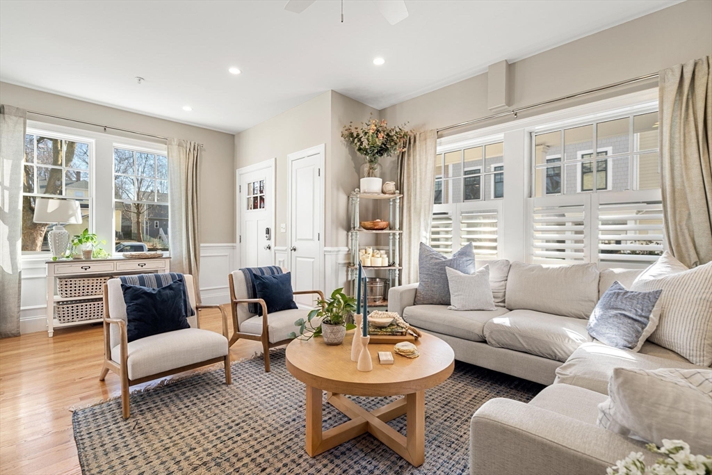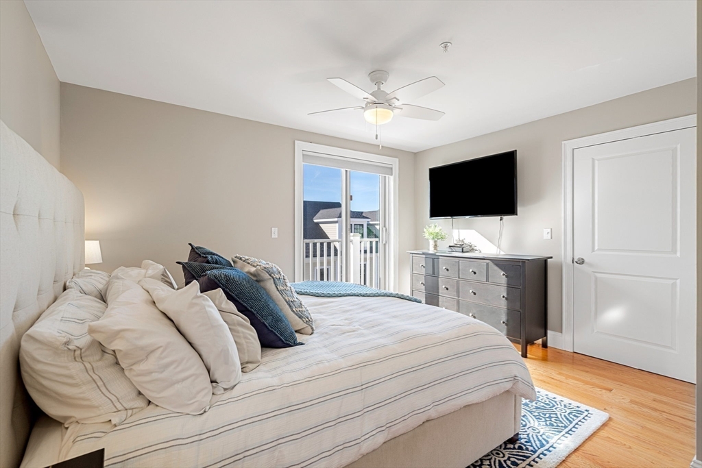 Living more like a single-family than a condo, this spacious four-bedroom townhouse spans four levels in one of Dorchester's most desirable enclaves. The newly refinished lower level features a full bath with steam shower and brass fixtures plus a versatile den/guest room with custom Murphy bed. The main level is anchored by a designer kitchen with high-end finishes, opening to bright dining and entertaining areas and access to the backyard. Upstairs, three bedrooms (one ensuite) an additional full bath, and a stunning top-floor primary suite with two walk-in closets, a private balcony and spa-like en suite with soaking tub and shower. Outdoor living is exceptional with a private patio leading to a huge, newly landscaped and fully fenced yard - rare in the city. Two off-street parking spaces, ample storage and a well-run five-unit association add ease and peace of mind. Perfectly located just blocks from the Red Line and minutes to I-93, this Clam Point home delivers space and style!